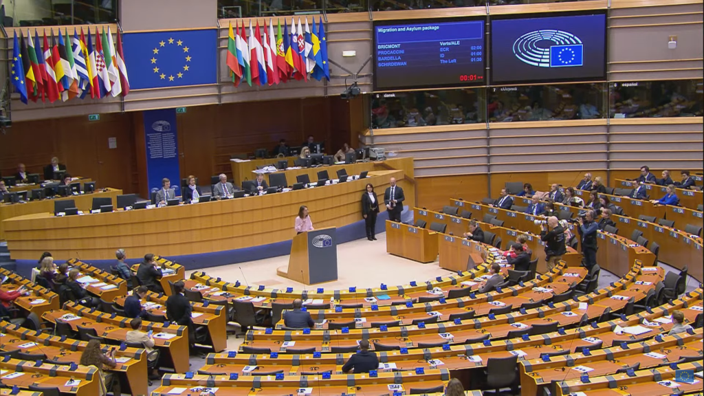 Discurso de la eurodiputada Brigmont (Verdes) sobre el pacto de inmigración y asilo en el Parlamento Europeo. Fuente: European Parliament
